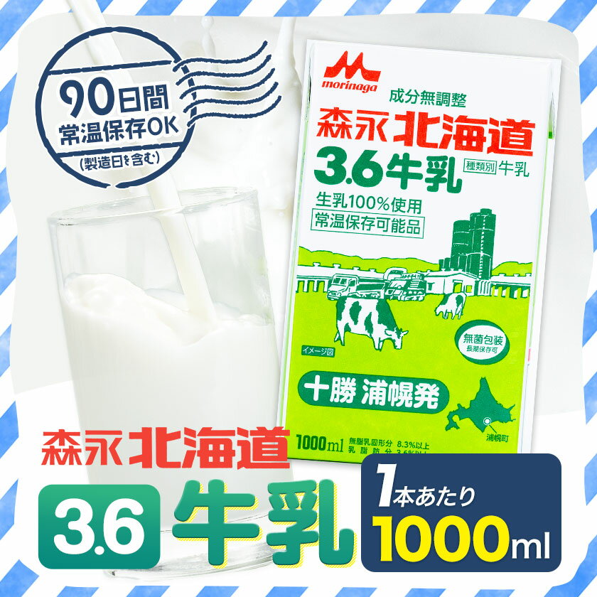 - 【ふるさと納税】最短7日発送! 【森永乳業】高レビュー★4.73 森永北海道3.6牛乳 1L×12本 定期便 3回 常温長期保存 ロングライフ《7-14日以内に出荷予定(土日祝除く)》備蓄 成分無調整 濃厚3.6% 大容量まとめ買い 北海道十勝浦幌産 送料無料