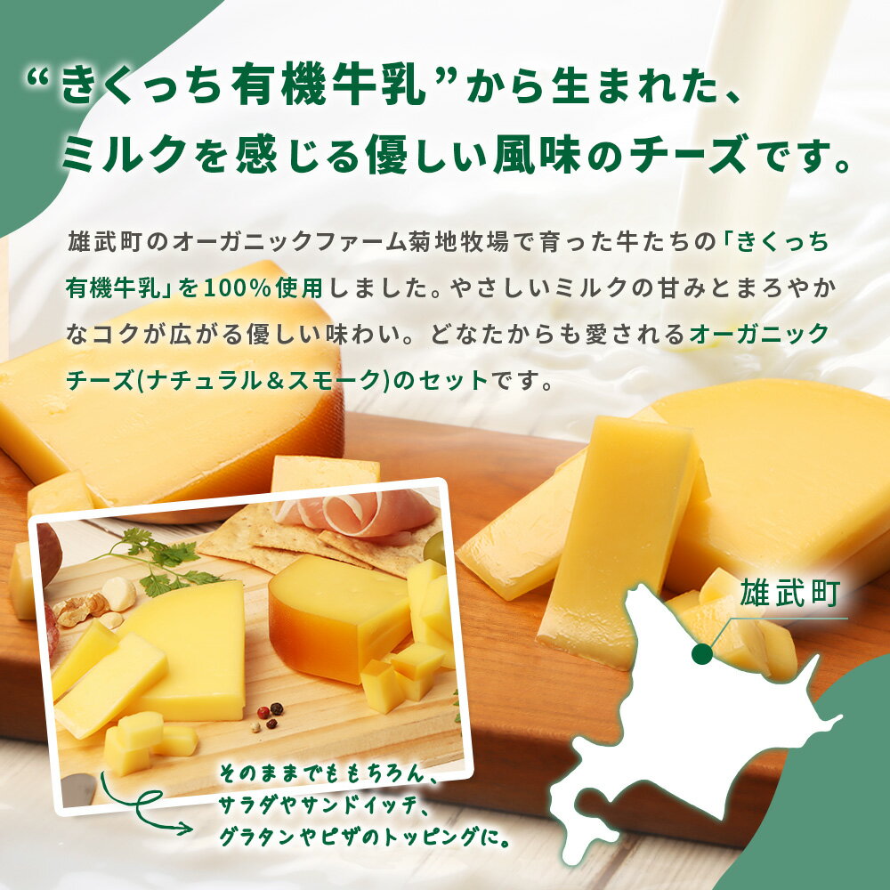 - 【ふるさと納税】北海道雄武町産 きくっち有機チーズ3個セット(ナチュラル2個・スモーク1個) | チーズ 有機チーズ ナチュラルチーズ スモークチーズ チーズセット 詰め合わせ オーガニック 有機JAS グラスフェッド 牧場 おつまみ お取り寄せ 北海道 雄武町 雄武【01121】