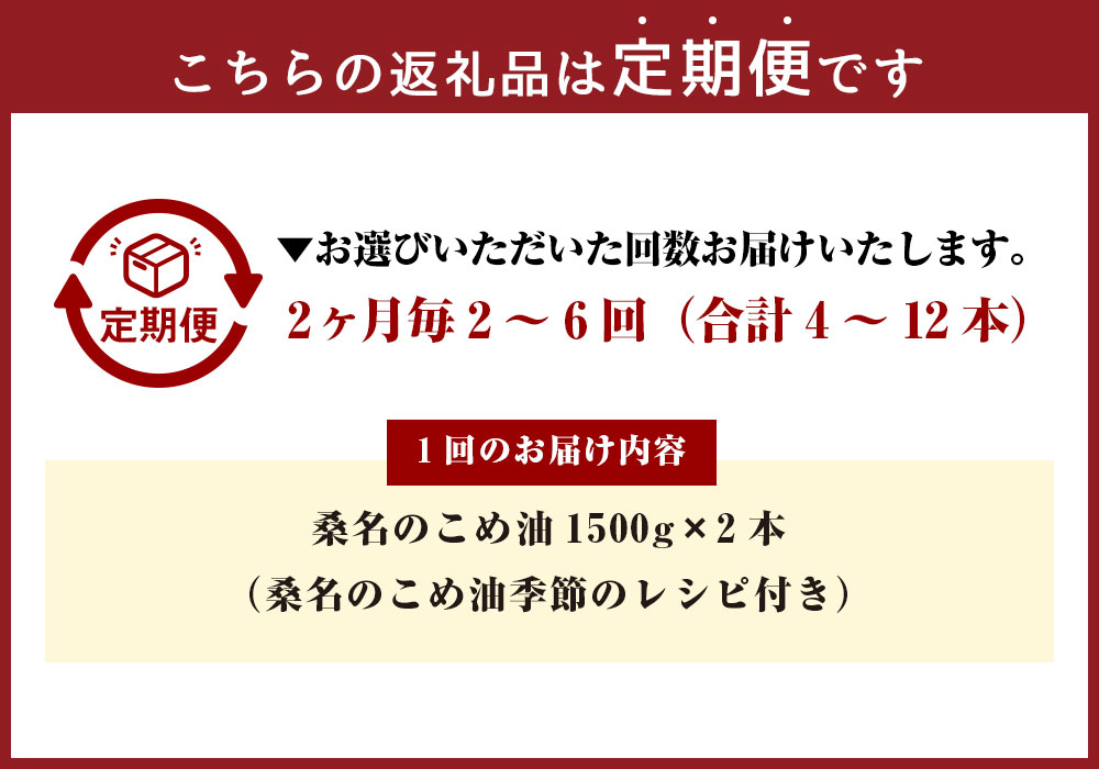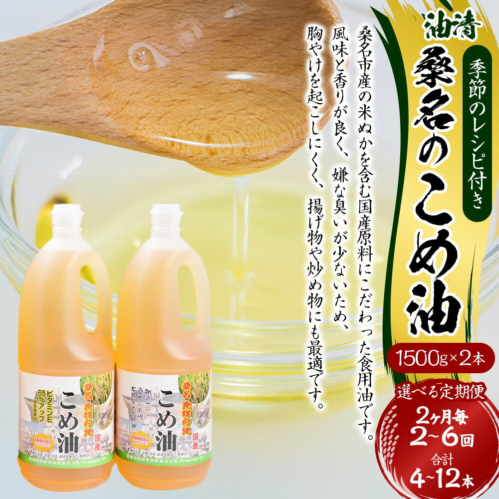 - 【ふるさと納税】<選べる定期便>油清 桑名のこめ油 1回あたり計3kg(1.5kg×2本入り) 桑名のこめ油季節のレシピ付き 2ヶ月毎 2回 / 3回 / 4回 / 5回 / 6回 米油 油 あぶら 米ぬか ビタミンE 食用油 調味料 揚げ物 炒め物 保健機能食品 健康 国産 三重県 桑名市 送料無料