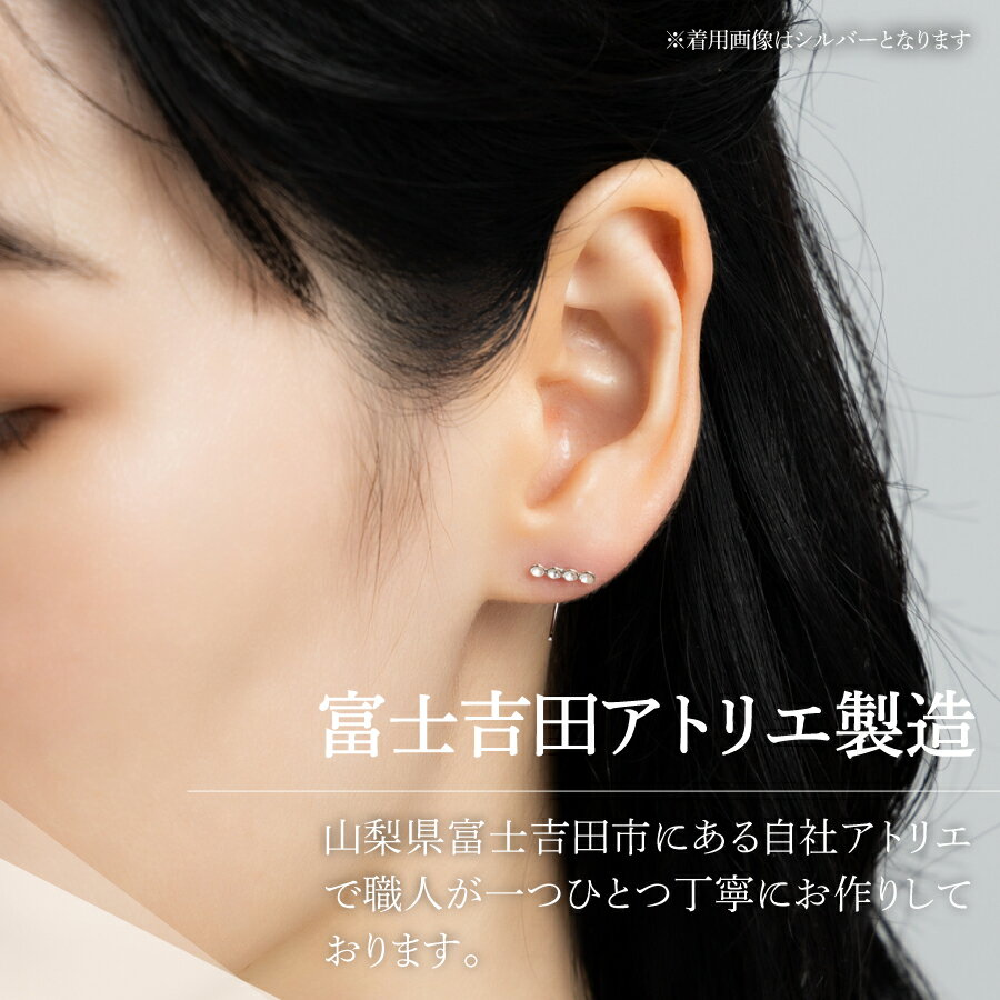 - 【ふるさと納税】 ピアス カーブピアス 真鍮 4ストーン 選べるカラー シルバー ゴールド 全長12mm 金属アレルギー対応 ニッケルフリー シンプル アクセサリー カーブ ユニセックス メンズ レディース 2個セット ハンドメイド プレゼント 贈り物 LOKUMI 山梨 富士吉田