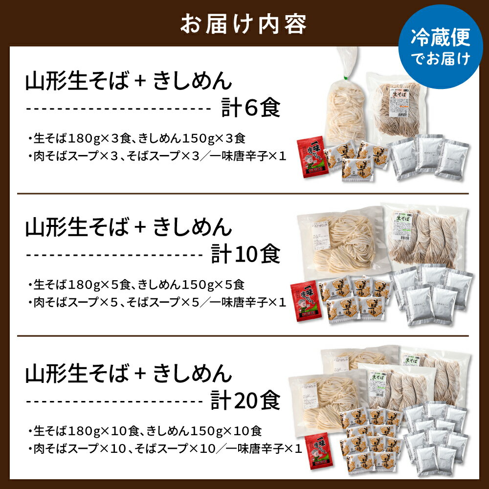 - 【ふるさと納税】山形生そば+きしめん 選べる ( 6食 10食 20食 )| 蕎麦 きし麺 麺 生麺 麺類 スープ セット 食べ比べ 年越し 人気 おすすめ お取り寄せグルメ 送料無料 山形県 東根市