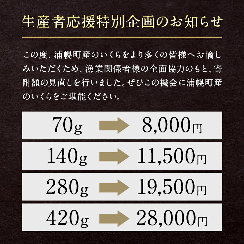 - 【ふるさと納税】高評価★4.74 北海道産 いくら 醤油 ★数量限定★ 選べる 70g 140g 280g 420g 粒立ついくら 【選べる出荷時期】国産 浦幌 厚内 山本商店 小分け 鮭いくら サケ いくら丼 人気 海鮮 魚介 冷凍 送料無料