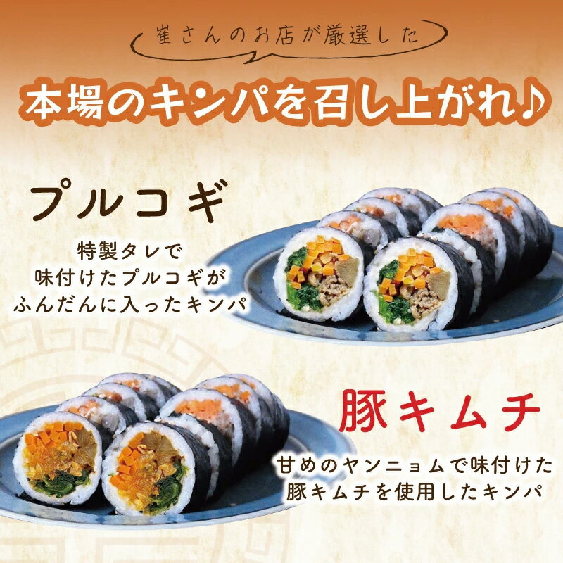 【ふるさと納税】冷凍キンパセット 選べる 種類 本数 5本 / 10本 本場 厳選 プルコギ 豚キムチ ハムチーズ ツナマヨ やさい ヤンニョム 韓国 本格的 手作り キンパ 食事 おつまみ 食べやすい 国産米使用 レンジ解凍 冷凍保存 簡単調理 お手軽 時短 大阪府 泉佐野市 送料無料