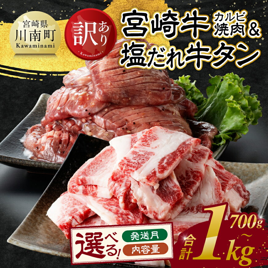 - 【ふるさと納税】 ※内容量・発送月が選べる※【訳あり】 宮崎牛カルビ焼肉&塩だれ牛タン - 肉 牛肉 宮崎牛 カルビ タン たん 牛たん 味付き おかず 焼くだけ 簡単調理