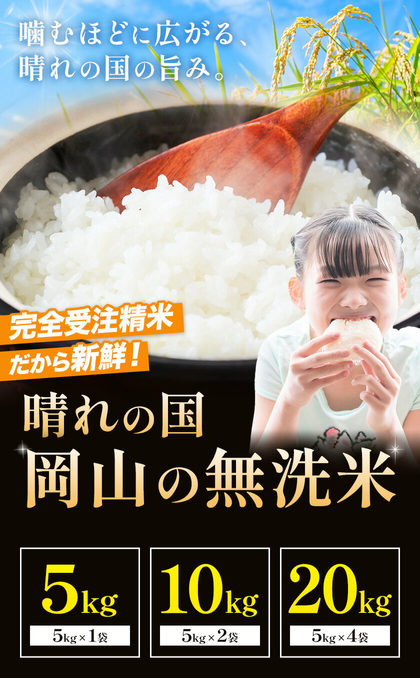 【ふるさと納税】7-14営業日発送 無洗米 ★寄附額見直し 9,500円~★ 晴れの国岡山の無洗米 選べる内容量 5kg 10kg 20kg 3~12ヶ月 定期便 岡山県産 無洗米 無洗 米 矢掛町《回数をお選びください》米 コメ