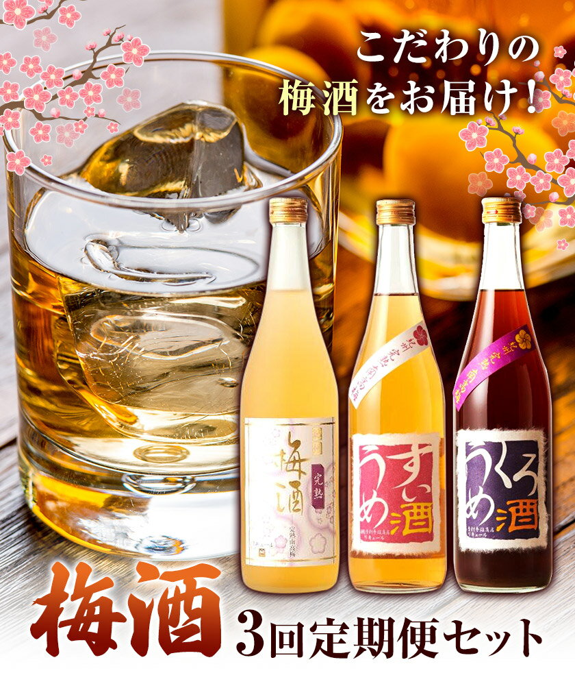 - 【ふるさと納税】梅酒3回定期便セット 紀州完熟南高梅 すいうめ酒 くろうめ酒 720ml×各1本 3回 定期便 計3本 酒のねごろっく《お申し込み月の翌月より出荷開始》和歌山県 岩出市 酒 梅酒 紀州 梅すいうめ酒 完熟梅酒 南高梅 梅黒糖 720ml 2160ml 送料無料