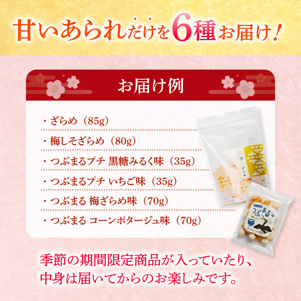 【ふるさと納税】【甘いあられ】 あられ おまかせ6種詰め合わせ おかき お菓子 おやつ あられ 米菓 せんべい 煎餅 和菓子 詰め合わせ セット バラエティ 小分け シェア お茶請け おつまみ ざらめ 黒糖 抹茶 ミルク チョコ キャラメル ギフト 岐阜市 / 丸幸製菓[ANGG001]