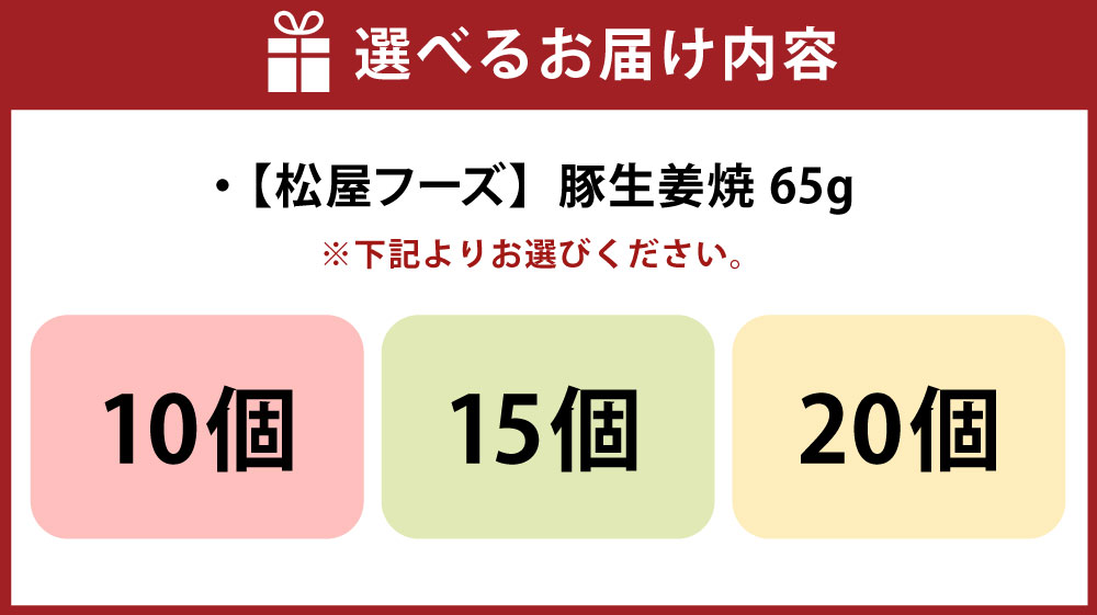 【ふるさと納税】【松屋フーズ】豚生姜焼 65g×10個/15個/20個 豚 豚肉 生姜焼 生姜焼き 肉 冷凍 ご飯 ごはん おかず 夜食 非常食 備蓄 夕食 食事 65g 10個 15個 20個 電子レンジ 料理 調理 時短 便利 簡単 惣菜 東京都 武蔵野市<選べる内容量> 送料無料
