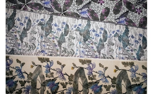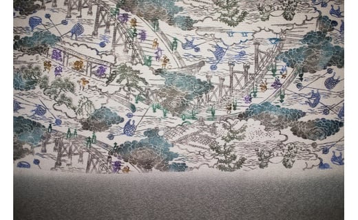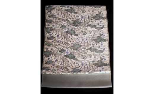 - 職人技がさえわたる世界に一つだけの「手差し型染め 名古屋帯」(古代柄/川の風景)