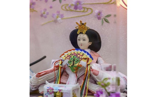 - 【雛人形】あみ 小芥子(約12㎝)二人 アクリルケース 灯り付 パープル木目