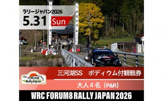 ラリージャパン【三河湖SS(三河湖観戦エリア)ポディウム付観戦券/大人4名(トヨタテクニカルセンター下山駐車場P&R)】5月31日(日)