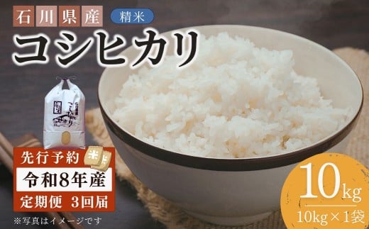 - 【先行予約】令和8年産 定期便 石川県産コシヒカリ 精米 計10kg(10kg×1袋)×3回便 お米 白米 こしひかり|石川県 小松市 【坂下農産】