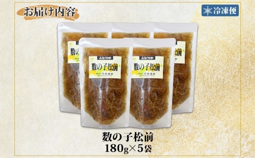 - 数の子松前 180g 5袋 北海道 数の子 にしん 鰊 松前漬け 漬物 醤油 海鮮 生鮮 珍味 おつまみ ご飯 おかず お酒 晩酌 お取り寄せ グルメ 冷凍 竹田食品 函館市 _HD134-032