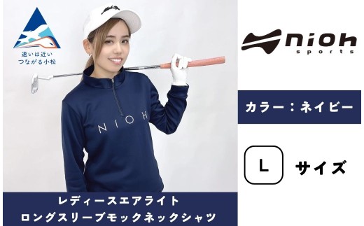レディースエアライトロングスリーブモックネックシャツ/ネイビー/Lサイズ ゴルフウェア ゴルフ レディース ロゴカラー モックネック 紺色 おしゃれ コーデ|石川県 小松市【有限会社ドオム】