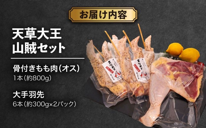 天草大王【山賊セット】幻の鶏 キャンプ BBQ 骨付き もも肉 約800g!! 大手羽先 3本×2セット / 熊本 鶏 鶏肉 手羽先 もも 骨付き肉 手羽先 冷凍 肉セット 【くまもと食彩の力】[AYAN035]