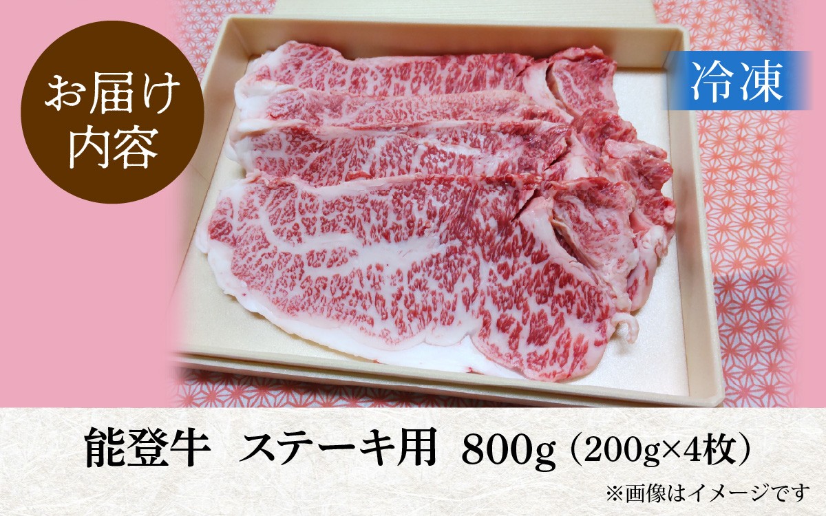 能登のブランド牛をご自宅で! 能登牛 ステーキ用 800g(200g × 4枚)| 冷凍便 肉 牛肉 奥能登 能登半島 国産 ステーキ肉 ブランド牛 和牛 黒毛和種 黒毛和牛 送料無料