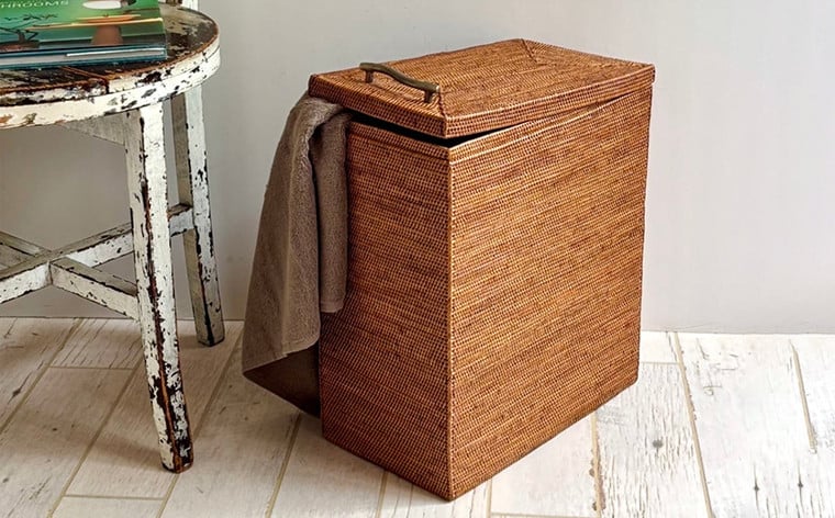 BAX-270-W アタ 真鍮取っ手スリムランドリーボックス(無地・W20×D35×H40):ウェーブ 真鍮 取っ手 ランドリー ボックス おすすめ 雑貨 収納 箱 入れ物 スリム 省スペース 長方形 洗濯 バスルーム 脱衣所 ペットボトル 2リットル 2L インテリア グッズ オリジナル 手作り プレゼント ギフト 数量限定 バリ島 アジアン アタブラス ATABRASS