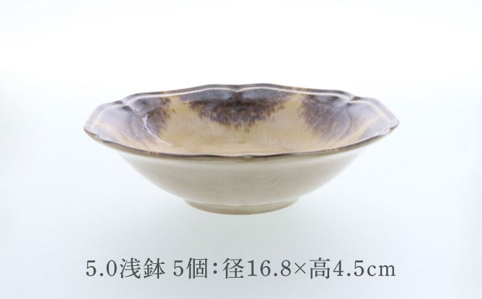 【美濃焼】ポルト ティーク型 5.0浅鉢 5点セット【カネ定製陶】 [MEI240]