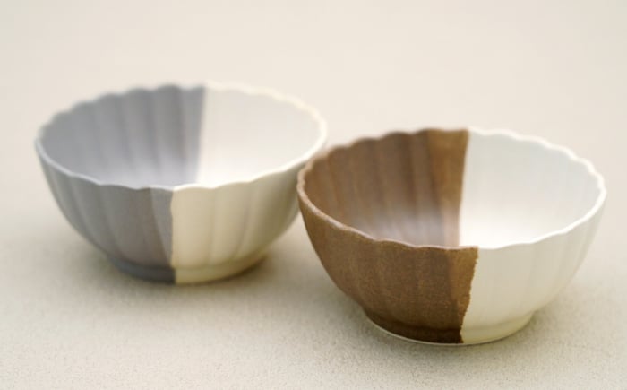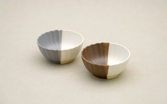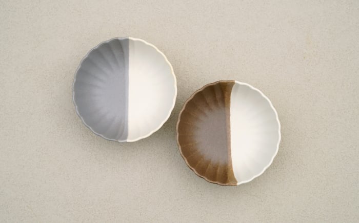 - 【波佐見焼】花しのぎ 丸小付 ペア ハーフカラー 栗・グレー【団陶器】 [PB189]