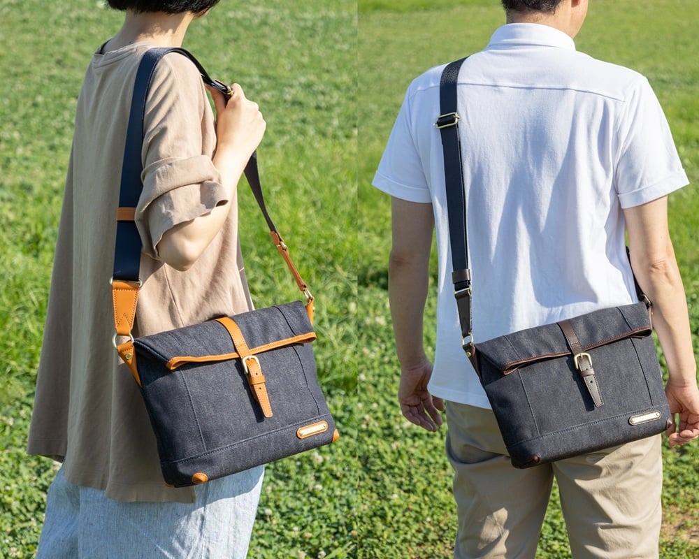上質な素材で作った大人のワンショルダーバッグ 琵琶湖ブルー【カバン かばん バッグ 鞄 ハンドメイド】