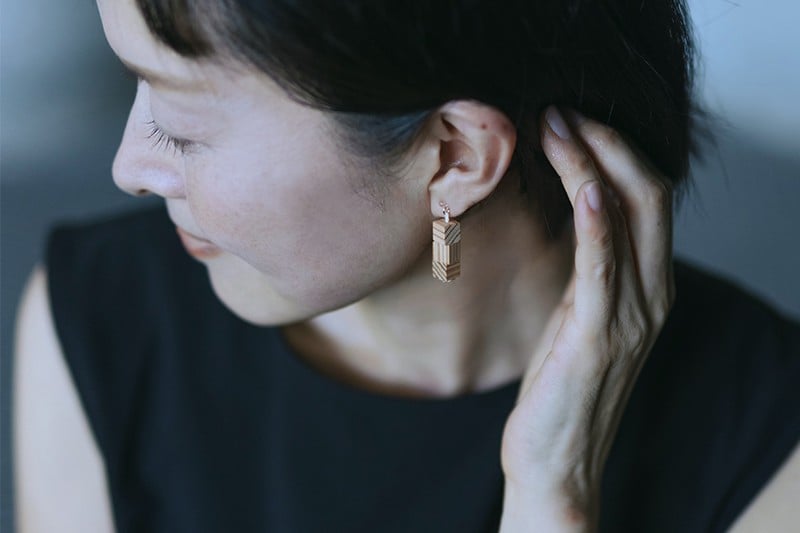 【KALCANO】小国杉ジュエリー mii-みい イヤリング ピアス ジュエリー jewelry 金属アレルギー対応 樹脂パーツ アクセサリー レディース 熊本 阿蘇小国杉 工芸品 木製 キューブ 三粒タイプ 木糸 ギフト プレゼント Ogunist