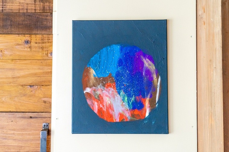 - 【チョイス限定】アクリル画F8号「天体観測」 抽象画 絵 音楽 曲の題名 絵の題名 表現 愛と平和 アート キャンパス サイン入り 原画 1点物 インテリア 柏山大生 新聞掲載 岩手県 奥州市 [BV015]