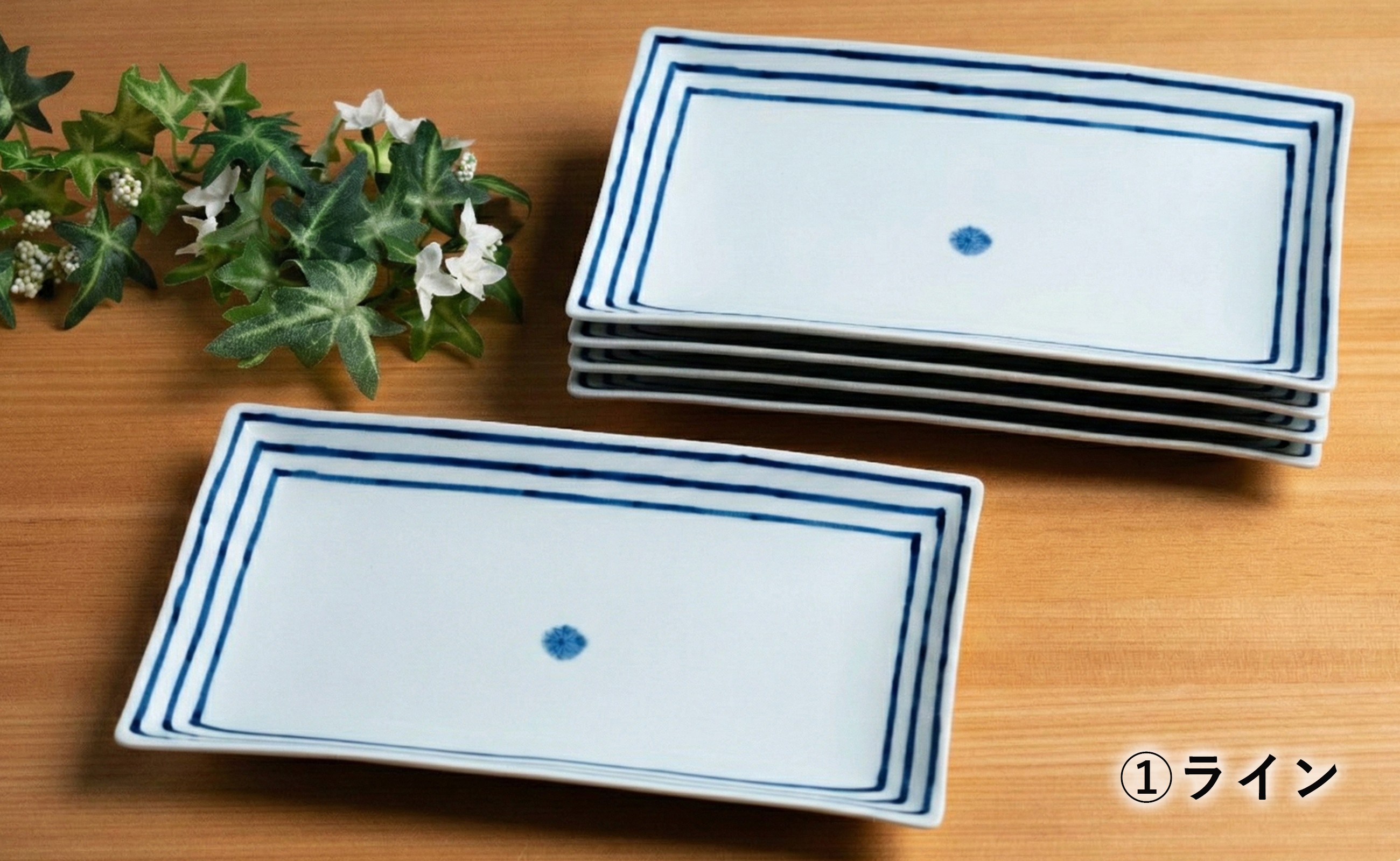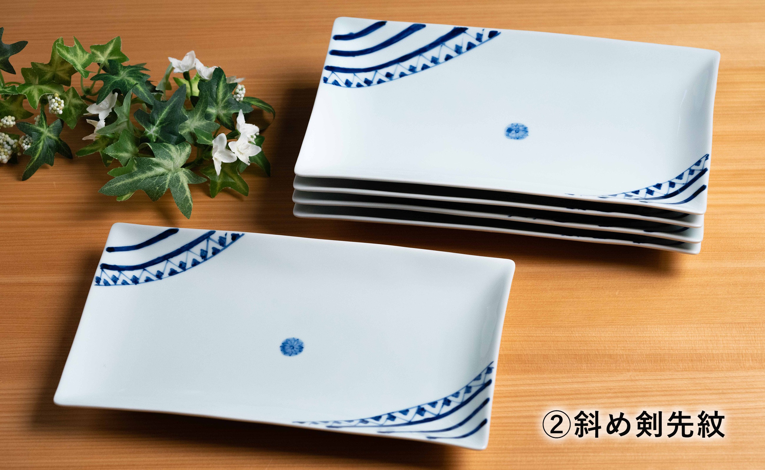 - 【カネアオ】有田焼 皓洋窯 焼皿 5枚セット(※ライン/ななめ剣先紋から柄をお選びください。)