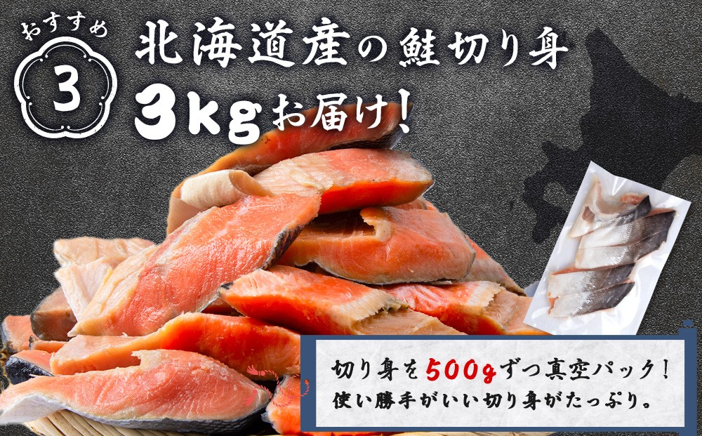 - 北海道産 塩サケ 切り身 3kg(頭なし) 塩鮭 冷凍 鮭 しゃけ おかず お弁当 魚 海鮮 〈斉藤水産〉
