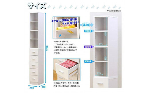 鏡面すきま収納タオルストッカー W25 ホワイト AKU1003481