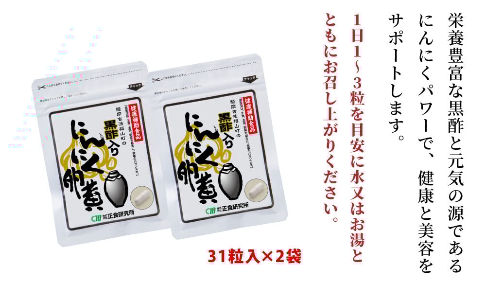 - 【健康補助食品】黒酢入りにんにく卵黄 (31粒入り×2袋) にんにく 卵黄 健康食品 ニンニク 玄米 黒酢 発酵 健康 正食研究所 南さつま市