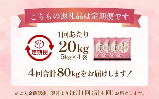 - 【1ヶ月毎4回定期便】 はるかおり 20kg 計80kg / 米 コメ お米 ライス ご飯 ごはん 飯 食品 精米 定期便 常温 福岡県 香春町