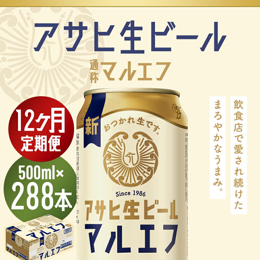 【ふるさと納税】【12か月定期便】アサヒ生ビール 500ml×24本×12回お届け 合計144L 288本 1ケース 12か月 定期便 アルコール度数4.5% 缶ビール お酒 ビール アサヒ 生ビール マルエフ 送料無料 【07214-0312】