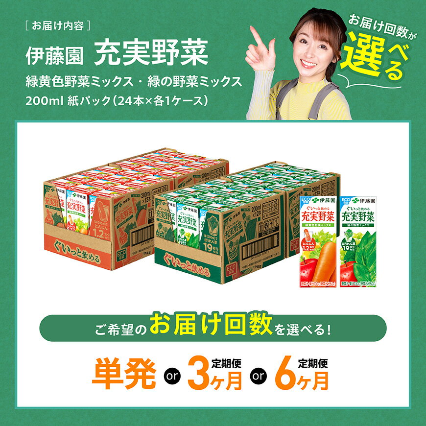 - 【ふるさと納税】 ※回数が選べる※伊藤園「緑黄色野菜&緑の野菜」紙パック計48本(各24本) - 伊藤園 飲料類 野菜 ミックス 緑の野菜 ジュース セット 詰め合わせ 飲みもの