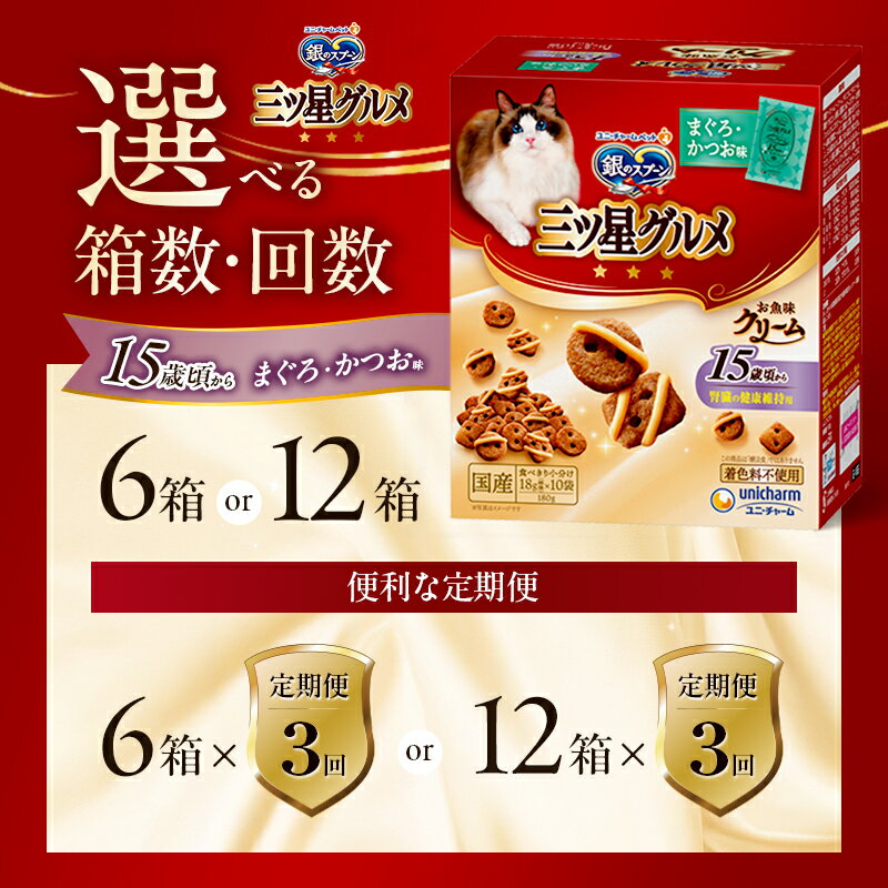 【ふるさと納税】銀のスプーン三ツ星グルメ お魚クリーム 15歳頃から まぐろ・かつお味 180g 選べる箱数・回数(6箱/12箱/1回/3回定期便) ペットフード キャットフード 猫のごはん 猫用フード 猫 ペット 小分け 個包装 ドライ ユニ・チャーム ペット