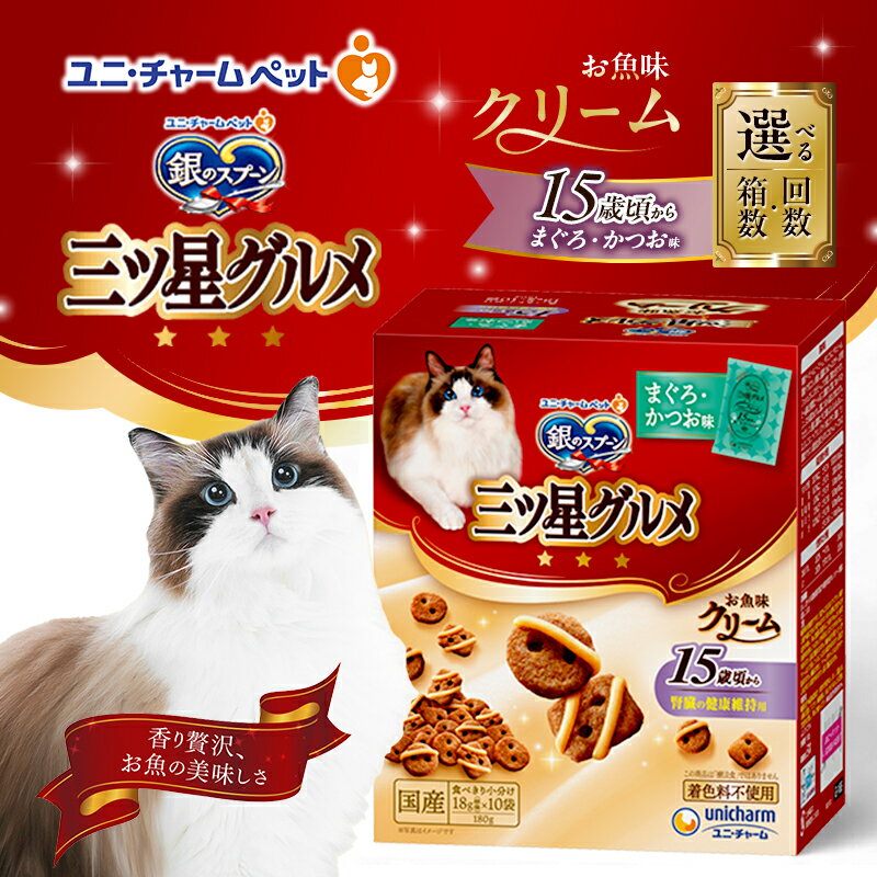 - 【ふるさと納税】銀のスプーン三ツ星グルメ お魚クリーム 15歳頃から まぐろ・かつお味 180g 選べる箱数・回数(6箱/12箱/1回/3回定期便) ペットフード キャットフード 猫のごはん 猫用フード 猫 ペット 小分け 個包装 ドライ ユニ・チャーム ペット