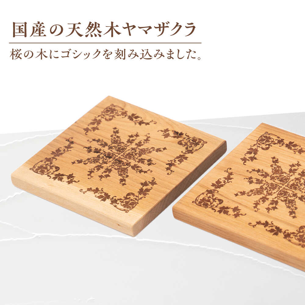 - 【ふるさと納税】デザインコースター×2個 ゴシック柄 ヤマザクラ 瑞浪市 / YADOSHIBI 木製 天然木 コースター おしゃれ[AZDI009]