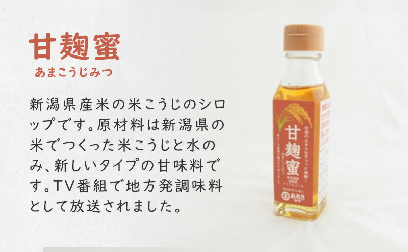 - 【ふるさと納税】麹 味噌 セット 新潟米の米こうじシロップ「甘麹蜜」と地元原料みそ「謙信みそ」セット あおき味噌 期間限定 レビューキャンペーン対象 熨斗対応 ギフト プレゼント 冬 贈答 お届け:寄附のご入金確認後、2週間以内を目途に発送いたします。
