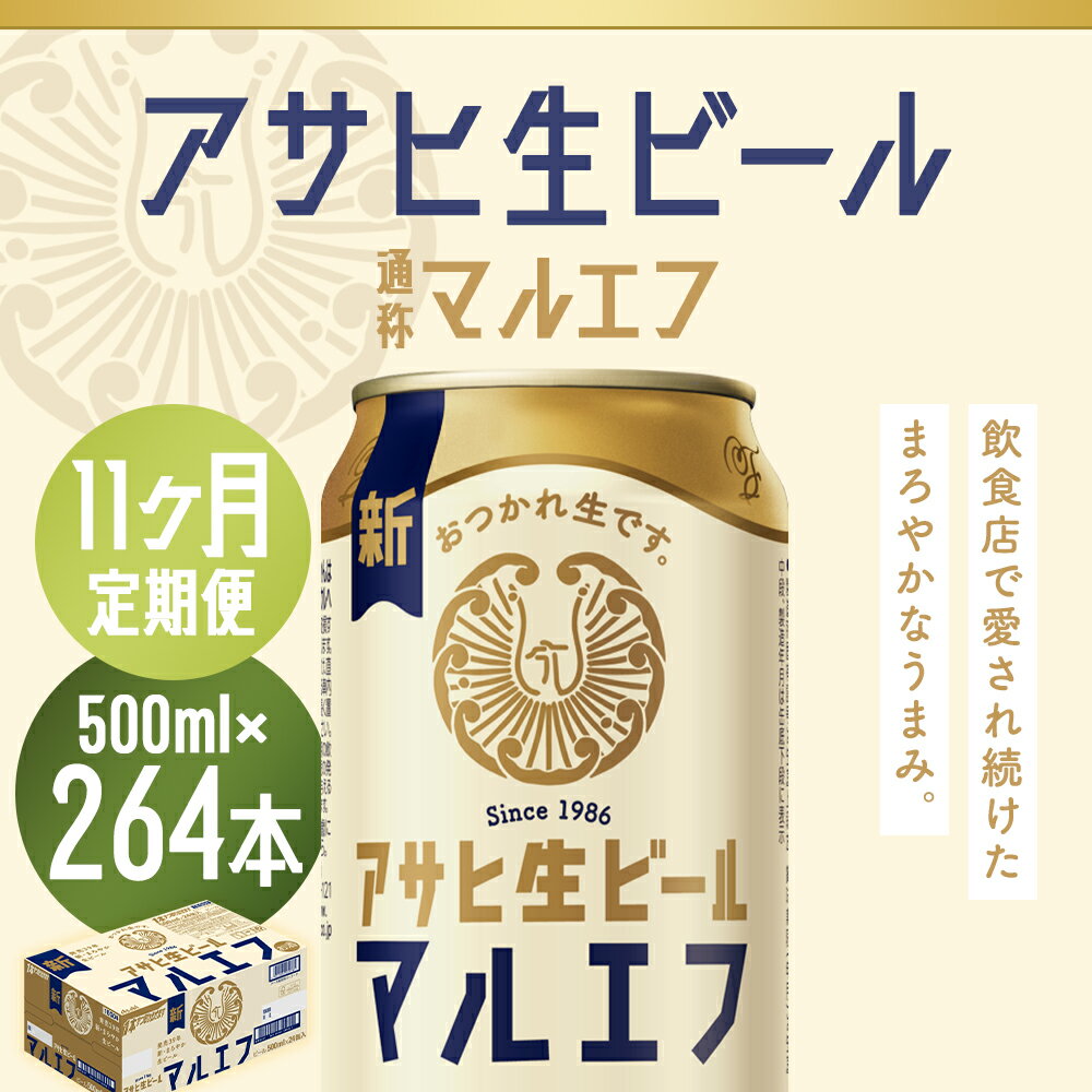 【ふるさと納税】【11か月定期便】アサヒ生ビール 500ml×24本×11回お届け 合計132L 264本 1ケース 11か月 定期便 アルコール度数4.5% 缶ビール お酒 ビール アサヒ 生ビール マルエフ 送料無料 【07214-0350】