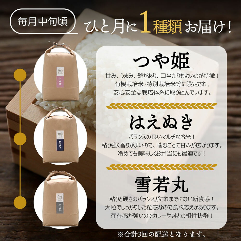 - 【ふるさと納税】<毎月中旬発送>吉祥ファーム 庄内町産おいしい米 3か月定期便! 選べる配送開始月 つや姫 はえぬき 雪若丸 ブランド米 2025年産 ふるさと納税 米 定期便 定期 山形県
