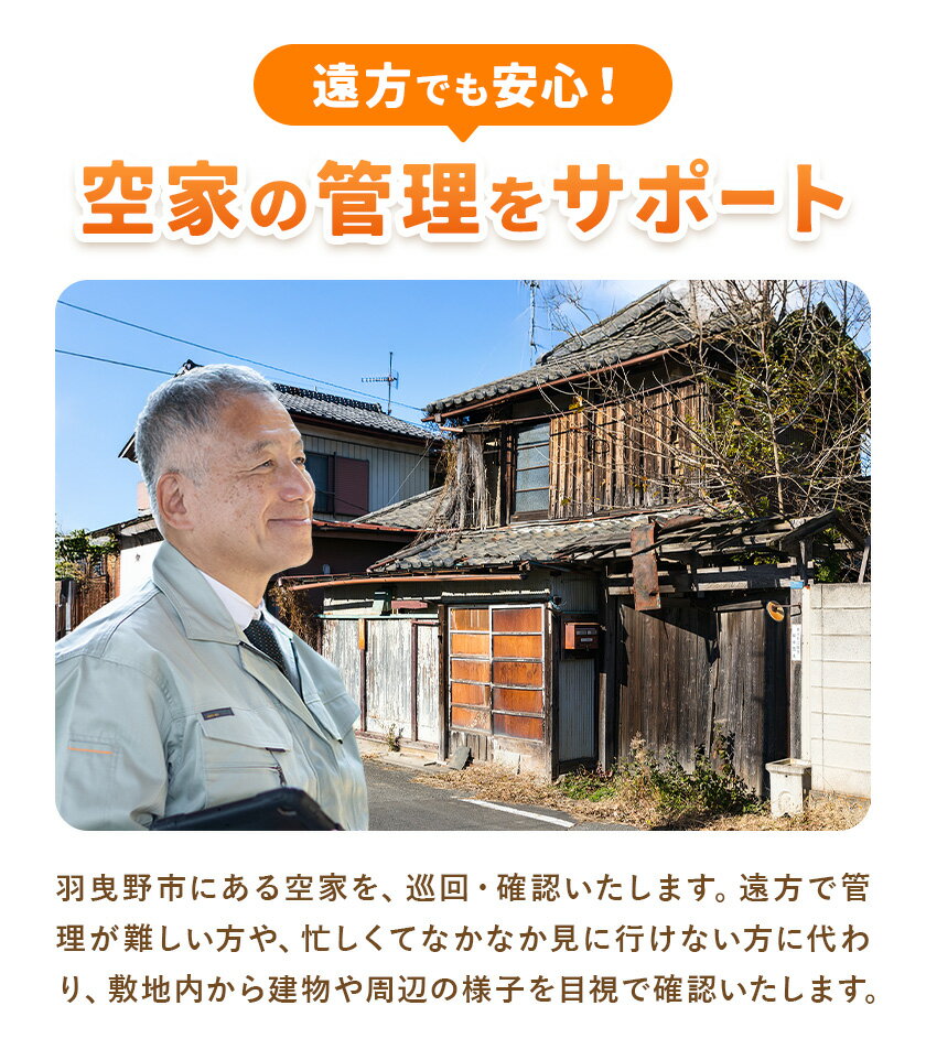 - 【ふるさと納税】敷地内からの目視による確認サービス 空家見守りサポート業務 羽曳野市シルバー人材センター 大阪府 羽曳野市 確認 サービス 空家 空き家 見守り サポート 管理 手伝い 掃除 家 送料無料