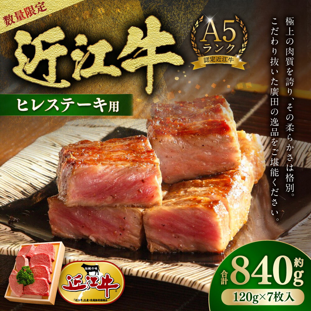 - 【ふるさと納税】数量限定 A5ランク 近江牛 テンダーロイン ヒレ ステーキ用 計約840g(約120g×7枚入り) 【近江肉の廣田】 牛肉 お肉 霜降り 冷凍 滋賀県産 国産 滋賀県 湖南市 送料無料