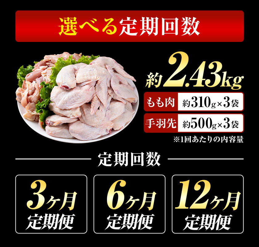 【ふるさと納税】選べる 定期便 九州産 若鶏もも肉(310g×3袋)・手羽先セット(500g×3袋) 計2.43kg 鶏肉 肉 鶏 手羽 唐揚げ 詰め合わせ セット 冷凍 九州 国産 熊本県 菊池市 送料無料《お申し込みの翌月から出荷》