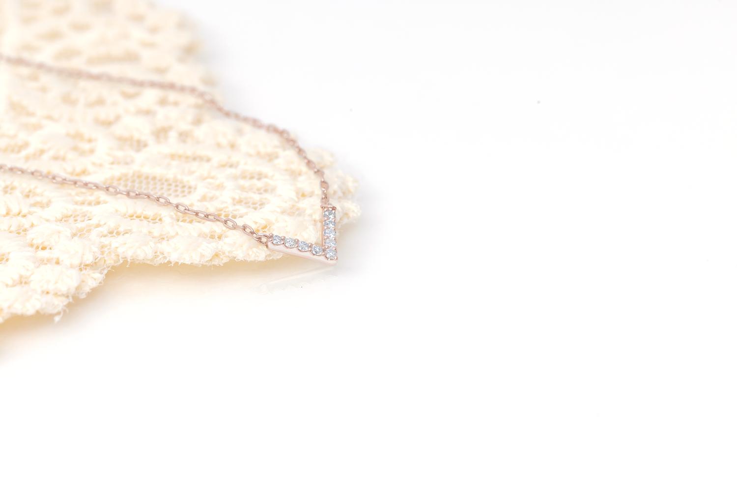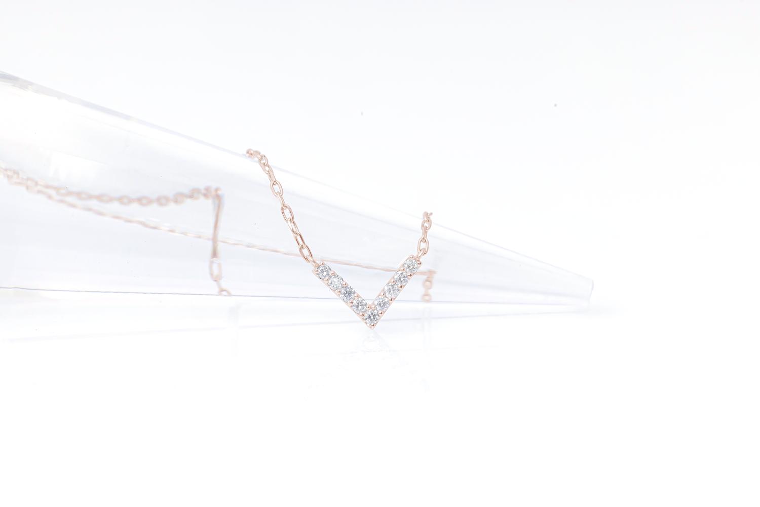 - ダイヤモンド ネックレス V 0.1ct K18 ピンクゴールド ジュエリー ダイヤ 18金 山梨 H-4862