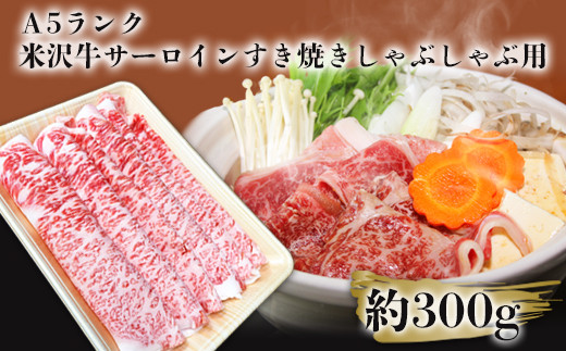 「A5ランク」米沢牛サーロインすき焼きしゃぶしゃぶ用約300g_B112