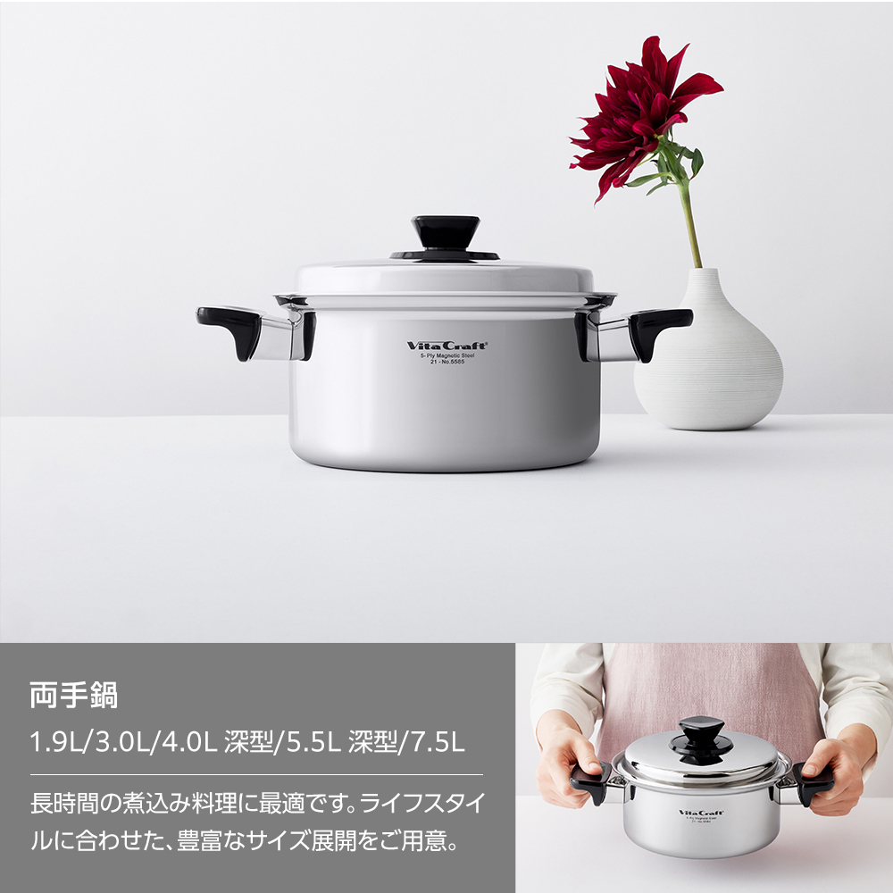 ビタクラフト 両手鍋 深型 7.5L Vシリーズ ガス・IH対応 熱しやすく 冷めにくい 全面5層構造 長期10年保証 鍋 お鍋 キッチン用品 調理器具 料理 人気 長時間の煮込み料理におすすめ Vita Craft