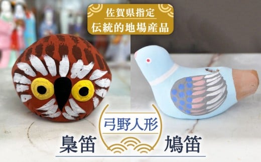 - 【140年以上の歴史を持つ土人形】弓野人形セット 梟笛と鳩笛 /江口人形店 [UBT003] 焼き物 やきもの インテリア 雑貨 置き物 置物 人形 伝統工芸 伝統工芸品