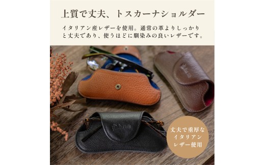 〈本革〉イタリアンレザー メガネケース ブラウン(無料名入れ 刻印) めがね 眼鏡 メガネ レザー トスカーナショルダー ギフト 刻印無料 名入れ無料