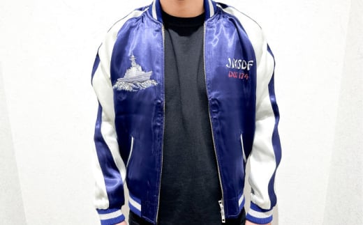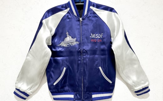 - 【Mサイズ】護衛艦きりしま柄刺繍スカジャン 服 ジャケット じゃけっと スカジャン すかじゃん おしゃれ かっこいい 護衛艦 きりしま 珍しい 和柄 ヴィンテージ 刺繍 最高峰 神奈川県 横須賀市 神奈川 横須賀【有限会社エムシーハウス】 [AKAP003-1]