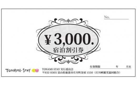 - 砺波市宿泊割引券(3,000円分×5枚)