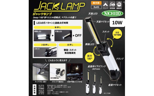 - ジャックランプ 10W [型式 LEH-B10W80CH]|日動工業 NICHIDO 充電式 LED ハンディライト [1085]